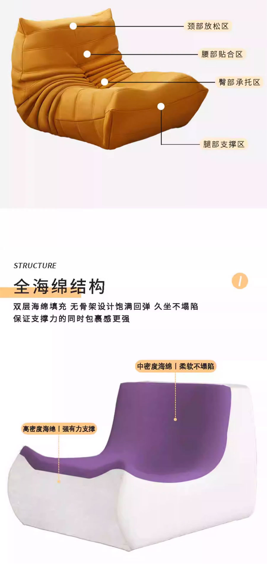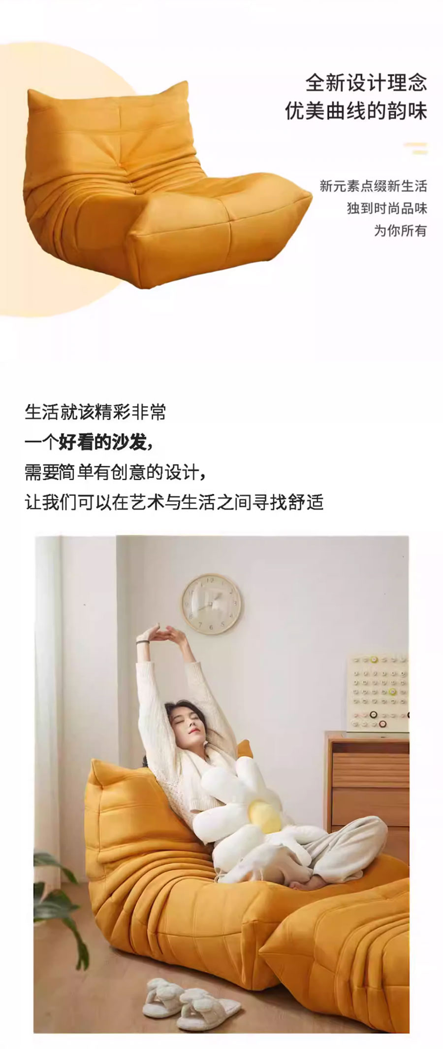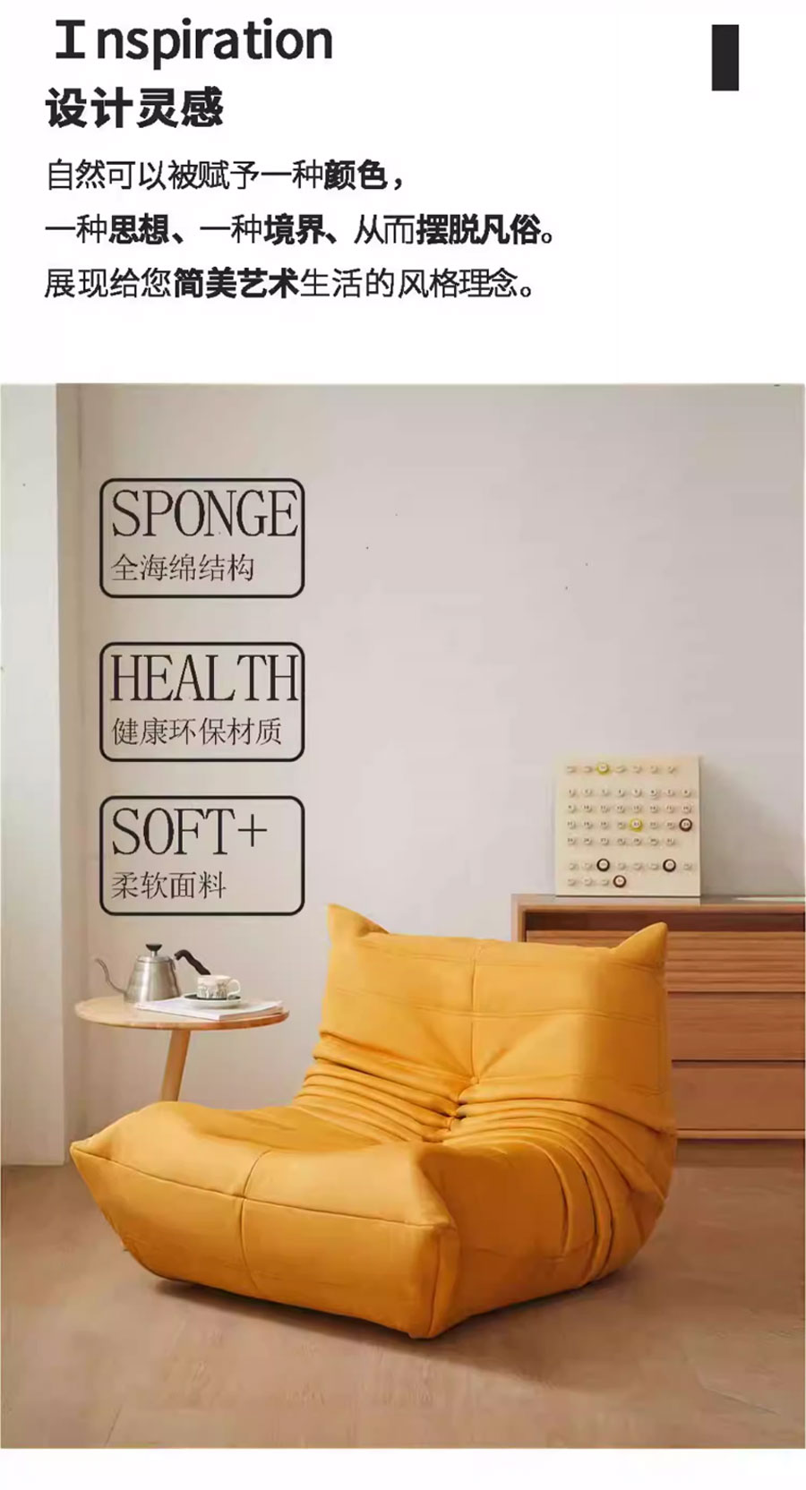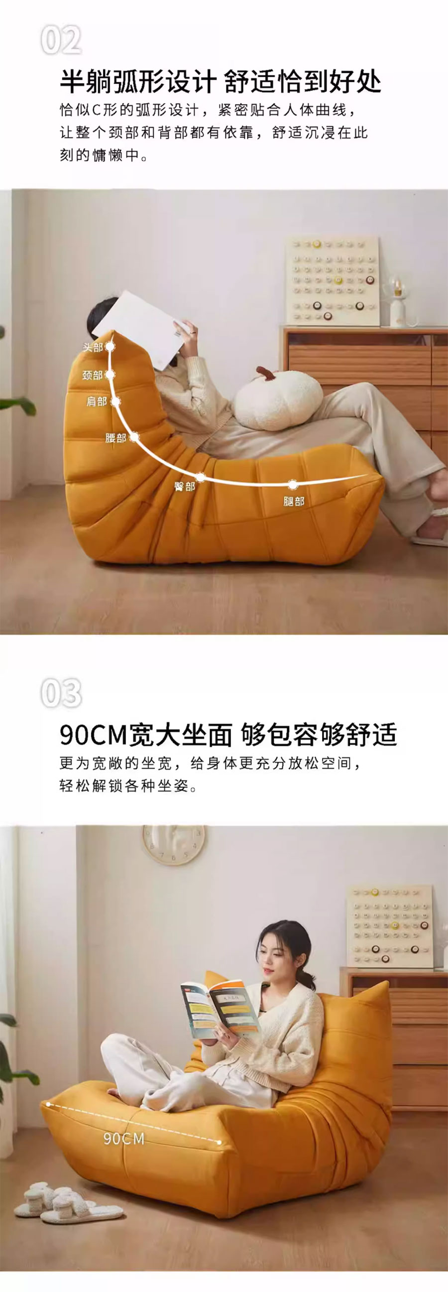 单人沙发毛毛虫懒人沙发椅单人休闲椅侘寂风沙发椅客厅卧室阳台椅