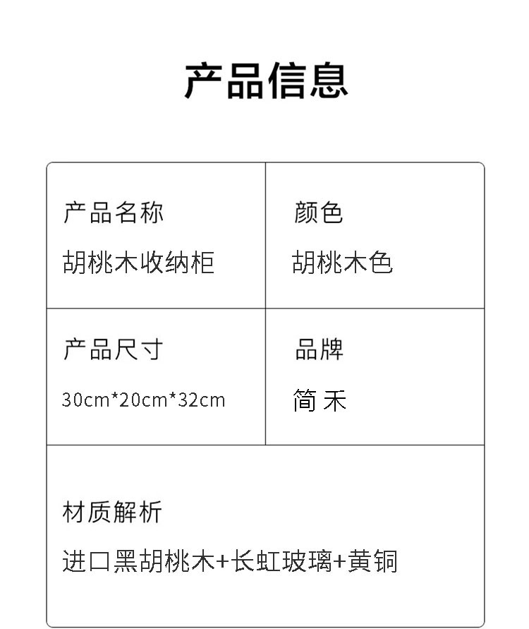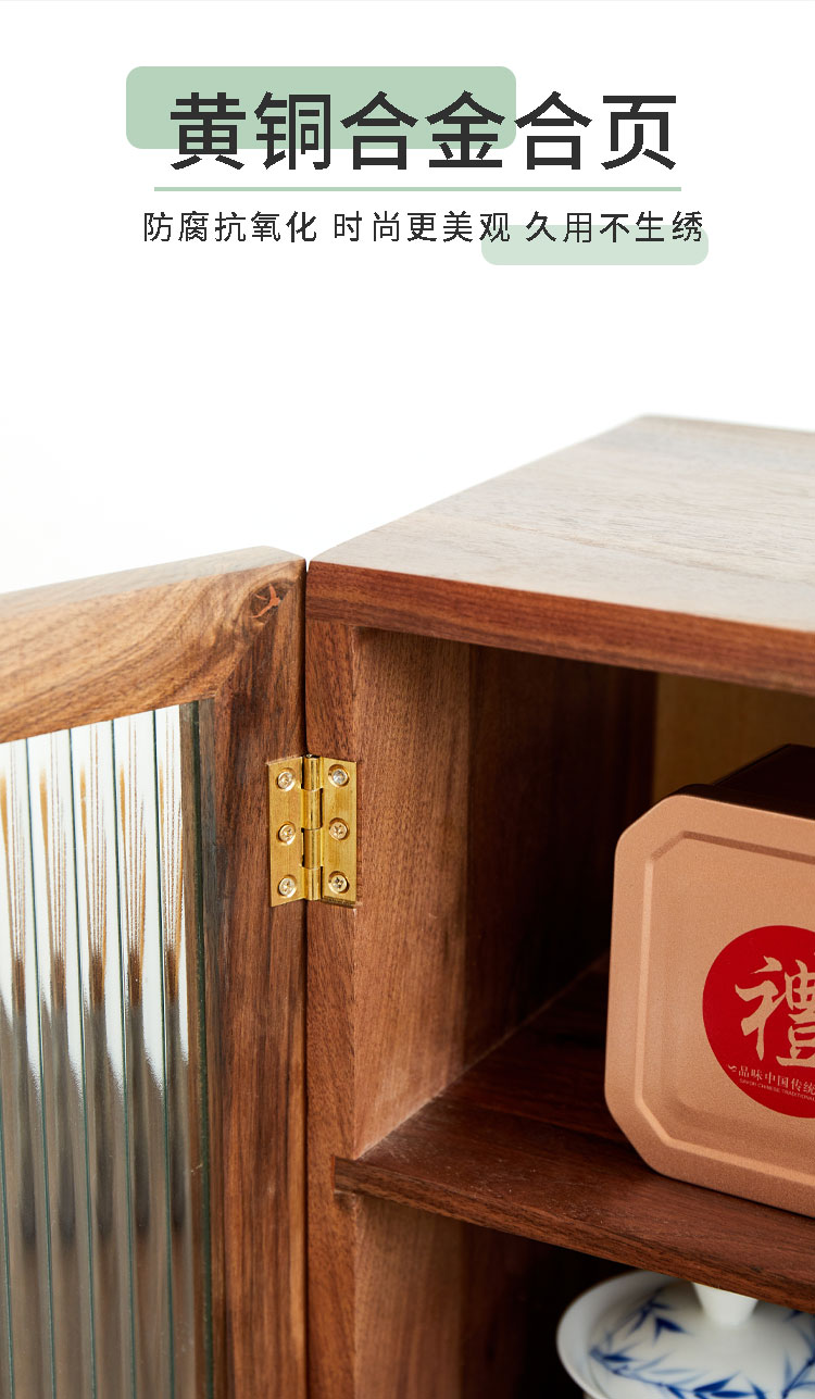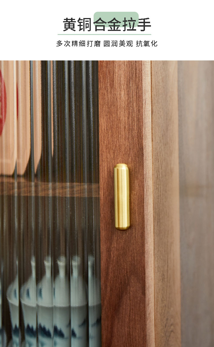 材质解析:进口黑胡桃木+长虹玻璃+黄铜